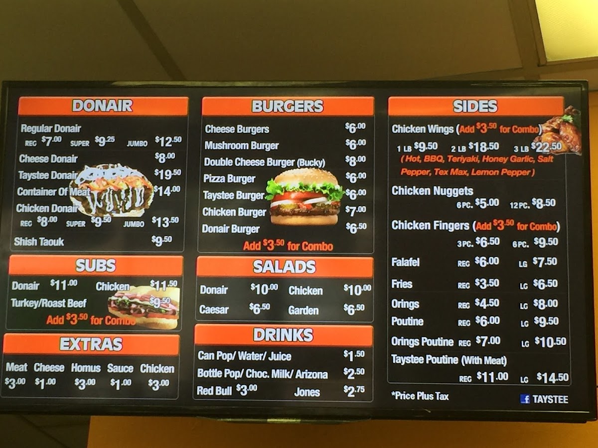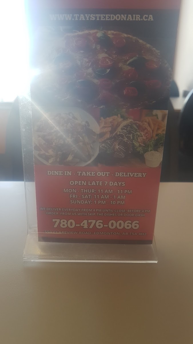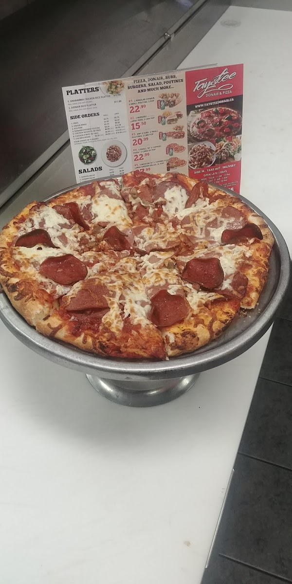 At Taystee Donair & Pizza, the atmosphere is casual and friendly, making it the perfect spot to grab a quick bite or enjoy a laid-back meal with friends and family. The restaurant maintains a warm and inviting vibe, highlighted by attentive staff eager to make your dining experience memorable. Regulars rave about the reliable service, ensuring every visit feels like coming home.