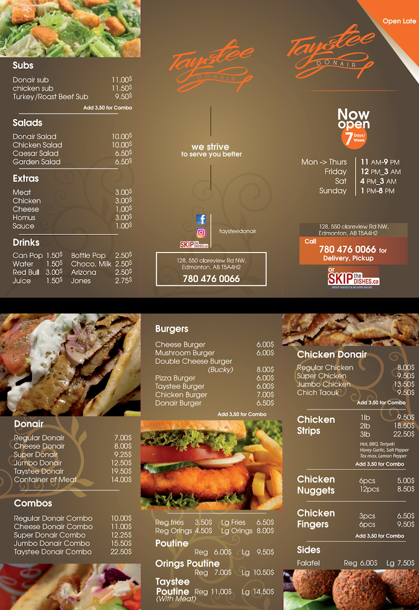 If you’re looking for a fast-food experience that diverges from the ordinary, Taystee Donair & Pizza is the perfect destination. With its rich array of delicious options and dedication to quality, it’s easy to see why this eatery has become a go-to for many Edmontonians. Don’t miss out on the chance to indulge in some of the city’s finest donairs and pizzas—your taste buds will thank you!